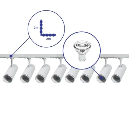 | Fabrikantnaam | Complete L shaped 1-Phase Track Set White incl. 8x Spot fixture + GU10 2700K 3W Dim – 2 x 2 meter i | |