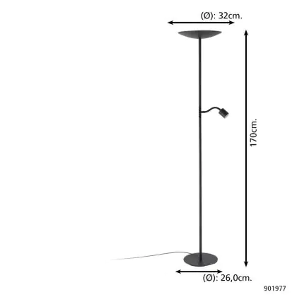 Beschrijving Eglo Vloerlamp Conivarino Staal Zwart 30.5W 3150lm - 827 Zeer Warm Wit | Dimbaar