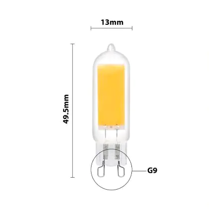 Om tot de meest geschikte G9 LED steeklamp te komen, is het handig om een aantal dingen te checken. Te beginnen met de kleurtemperatuur. Die is bij dit product: 2700K - Zeer Warm Wit. Wil je liever een andere kleurtemperatuur? Gebruik dan het filter 'Lichtkleur' aan de linkerkant van onze G9 LED Lampen pagina. Ook raden we aan om altijd de afmetingen van dit LED product te vergelijken met je huidige G9 lamp. De diameter is: 16mm en de hoogte is: 49.5mm.