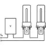 Bij (LED) spaarlampen bestaan er fittingen/lampvoeten met 2 pinnen of 4 pinnen. Kies altijd een spaarlamp met dezelfde lampvoet, anders past deze niet in het armatuur en werkt deze niet. Spaarlampen met een 2-pins fitting werken met een conventioneel voorschakelapparaat (EM) incl. starter. Spaarlampen met een 4-pins fitting werken met een elektronisch voorschakelapparaat (HF) zonder starter. |