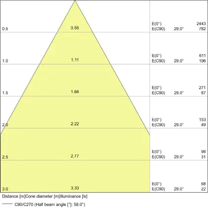De gradenbundel geeft informatie over hoe breed het licht wordt uitgestraald. Dit zit tussen de 0 en 360 graden (D). Hoe kleiner de hoek, hoe specifieker de lichtbundel is. Over het algemeen is een smalle gradenbundel perfect voor sfeer- of accentverlichting, terwijl een brede gradenbundel ideaal is om grote oppervlaktes te verlichten.