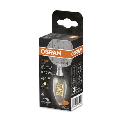Beschrijving Osram Vintage 1906 LED Classic Slim E14 Kaars Filament Helder 4.8W 470lm - 827 Zeer Warm Wit | Dimbaar - Vervangt 40W