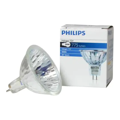 De Philips Brilliantline Dichroic 50W GU5.3 12V MR16 36D - 14620 heeft een levensduur van 4.000 branduren. Door de lange levensduur hoeft u de lamp minder snel te vervangen.