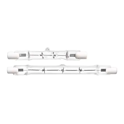 Bij het online kopen van een halogeenlamp zijn een aantal zaken goed om vooraf even te checken. Controleer altijd even om welke lampvoet/fitting het gaat. Zo weet je zeker dat de halogeen verlichting daadwerkelijk in het armatuur past. Dit product heeft als lampvoet: R7s. Een ander aspect is de kleurtemperatuur, wat wordt uitgedrukt in Kelvin. Hoe lager het aantal Kelvin, hoe warmer het licht. Voor decoratieve verlichting en accentverlichting raden we zeer warme lichtkleuren aan (2700K). Als algemene verlichting is warm wit (3000K) of koel wit (4000K) geschikter. De lichtkleur van deze halogeenlamp is: 2950K - Zeer Warm Wit. Op zoek naar een halogeen lampje in een andere lichtkleur? Klik dan hier voor het volledige assortiment halogeenlampen en maak in het filtermenu aan de linkerkant van de pagina onder Lichtkleur (Kelvin) jouw keuze.